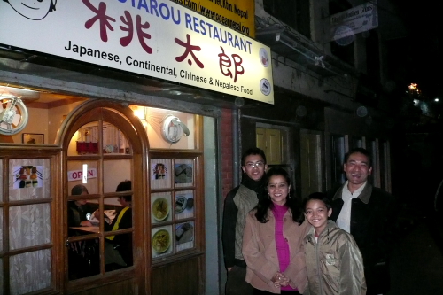約束の午後7時、タメル地区の中ほどにある「桃太郎」にプラカスと奥さんのジャヤスリ、長男のプロジェン、空港へも一緒に出迎えに来ていた次男のプロジェスの4人がやって来た。