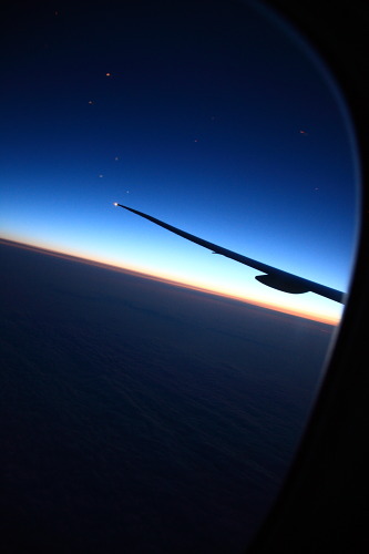 4月末から突如、世界的大騒動となった新型インフルエンザ騒動の煽りもあってさすがに今の時期、「海外旅行へ出かけると言う御時世ではないだろうなぁ」などと思いつつもトロント行きエア・カナダ便はまずまずの搭乗率。それでも機内後方になると窓側3席がそのまま空いている列もあり、運良くそちらをゲット!