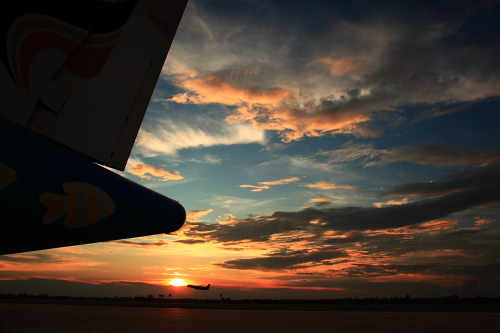8月27日午後6時、夕暮れ時のシェムリアップ空港へ降り立った