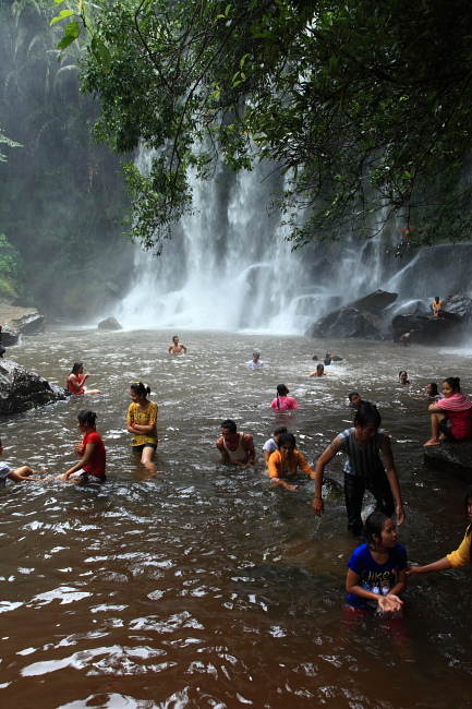 そんなローカル色いっぱいの滝周辺は訪れたのが日曜日だったこともあり、涼を求めてやって来たカンボジア人の家族連れや友人グループ、カップルらで大賑わいだった。