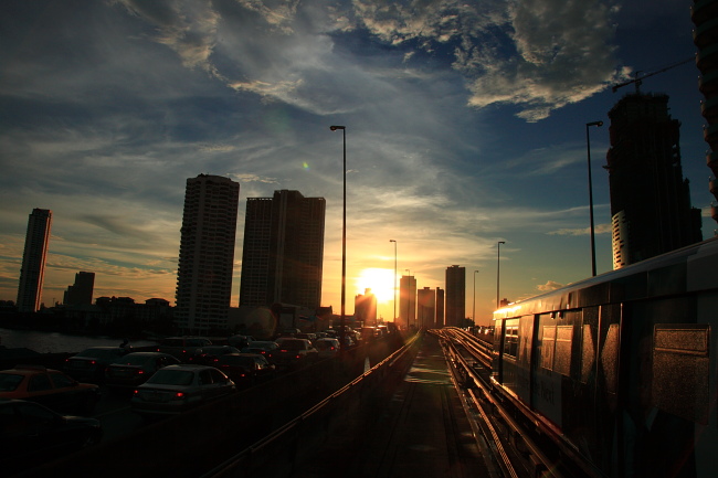 Sunset Time in Bangkok from Saphan Taksin, Bangkok, THAILAND