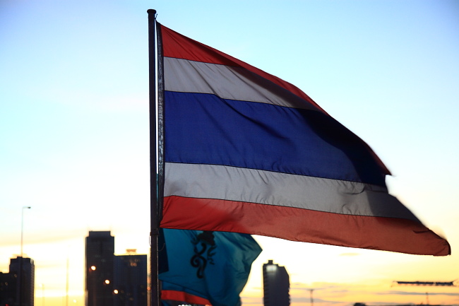 National Flag on Taksin Bridge, Bangkok, THAILAND