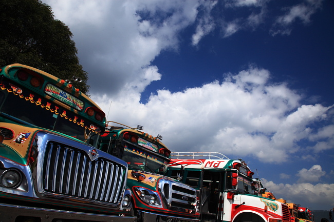 アメリカのスクールバスなどのお下がりが使われているもので、元々は黄色く塗られていた車体を個々のバスが芸術を主張するかのようにカラフルなデザインに塗り替えられ、今なお現役でグアテマラの町から町、村へと人々を乗せて走っている最もポピュラーな交通機関でもある。