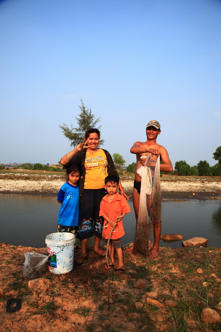 きっと、今夜のおかずのために1台のバイクに家族みんながまたがってこのドブ池へやって来て、そこでお父さんは必死に頑張っていたのだろう。