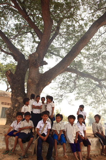 校庭の大きな木の前で / Kidscare School, Siem Reap, CAMBODIA