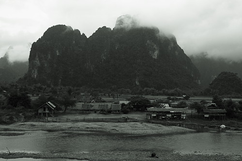 バスが進めど進めど雲行きは変わらずにバンビエン到着時もどんよりとした雲に覆われたまま。