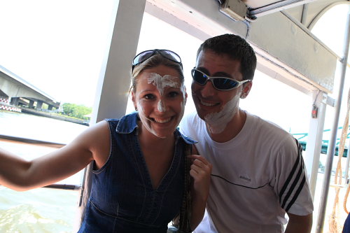 13:08 チャオプラヤー・ボート内で名誉(?)の化粧姿