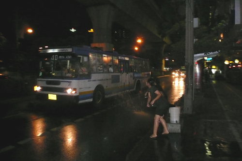 20:40 スクンビット通りでエアコン無しバスへ放水!