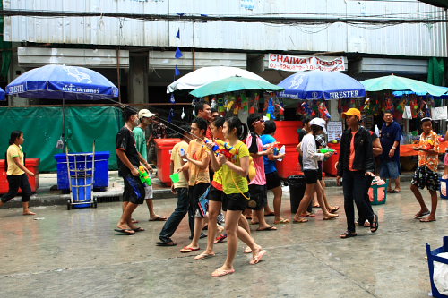 大都会バンコクでは本来の暑い季節に冷たい水を掛け合う風情とはかけ離れ、