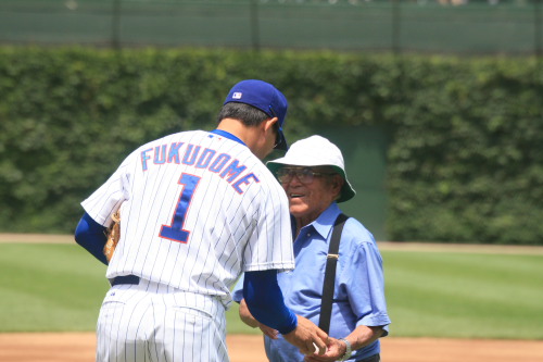 ヨシ・カワノさんの功績を称える始球式で捕手役に指名された福留
