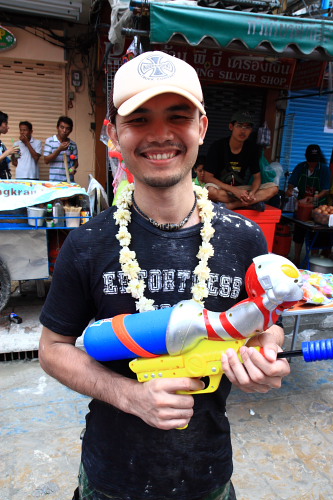 4月、ソンクラーンの水鉄砲 カオサンにて