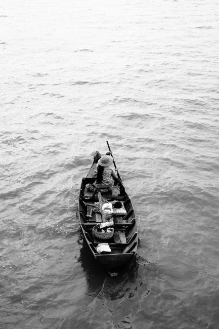 小さな小舟に乗っているのは母と子どもふたり、内ひとりは乳飲み子。