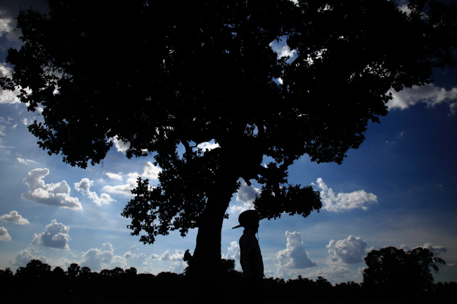 クロバイリエル村からソンボック村へ行く途中、大地に聳える木とその横に佇む一頭の牛の姿に魅せられバイクを止めてもらった。