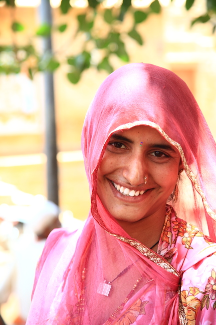 a lady wearing a beautiful sally / Jaisalmer, INDIA
