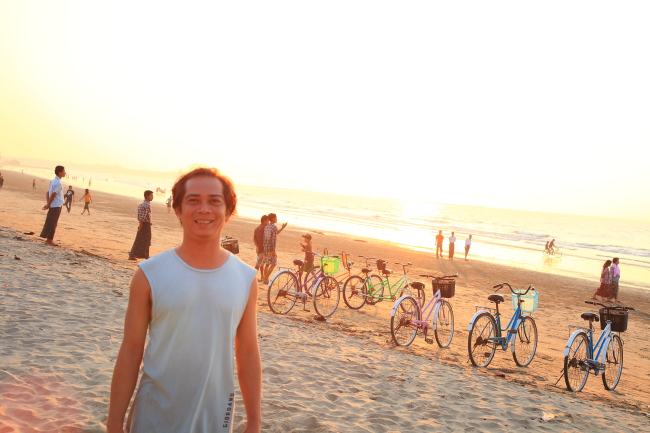 ビーチで出会った日本語堪能なキョーキョーさんは、かつて東京・中野にあるラーメン店で働き尽くしの毎日を送り、本国に帰った今はヤンゴン市内で小さなスーパーマーケットを営み、このビーチへは自ら運転するワゴン車で従業員らの慰安旅行にやって来ていた。