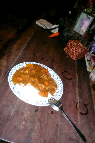事の運びは、たまたま宿へ戻った時間にいい臭いがして「おいしそうですね~」と覗いたまでが、「ニホン ノ ヒトニ タベテモライタイ」と流暢な日本語でアンニャさんにお勧めされたのがそのカレーだった。
