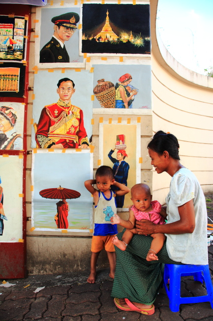 幼い子ども二人を引き連れ、女は路上で絵画を売っていた。