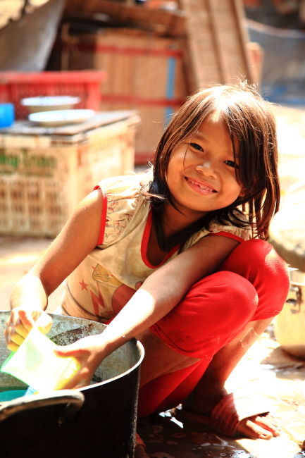 去年、学校と村で会ったスレイロアットちゃんと再会したのは高床式の家の1階部分でお皿洗いをしていた日曜日のお昼前。