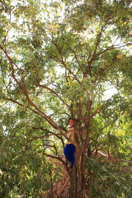 村では、こんな大きな木が子どもたちの遊び場になっている。