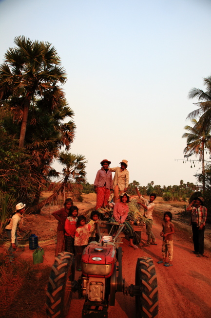 収穫を終えたトラクターはバス代わりに荷台に人々を乗せ、村へと帰る途中だった。